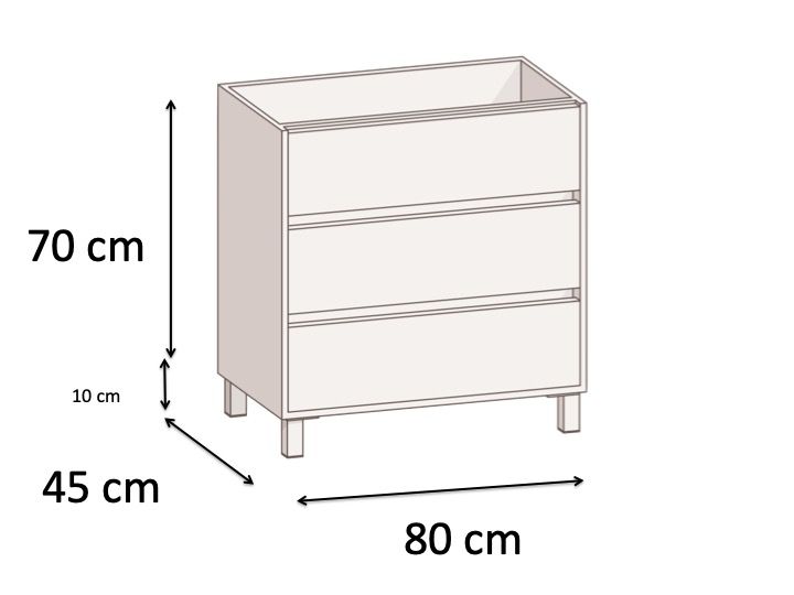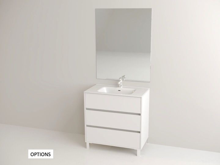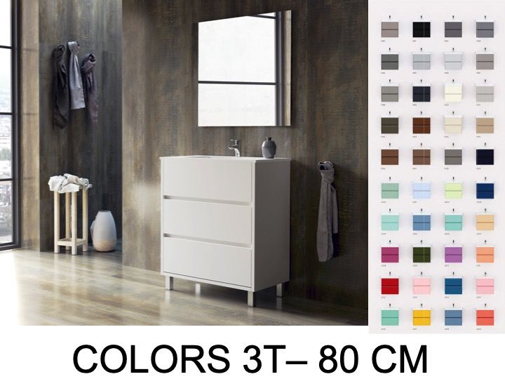 Vaskesæt med 80 cm - 3 skuffer + håndvask + spejl - colors forty 3t