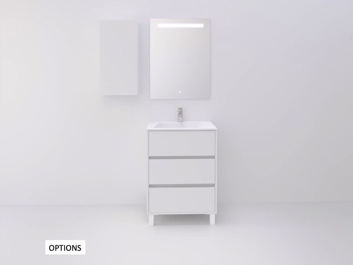 - Møbler leveres samlet, ophængt i justerbare anti-afmonteringsbokse. Sanitærrum: 70 mm.
