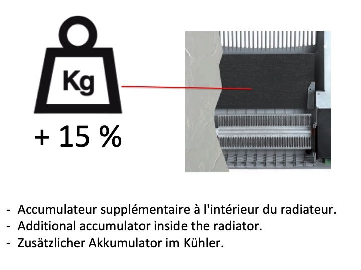- Mere inerti, dobbelt akkumulering. Ind og ud, ekstra akkumulator inde i radiatoren.