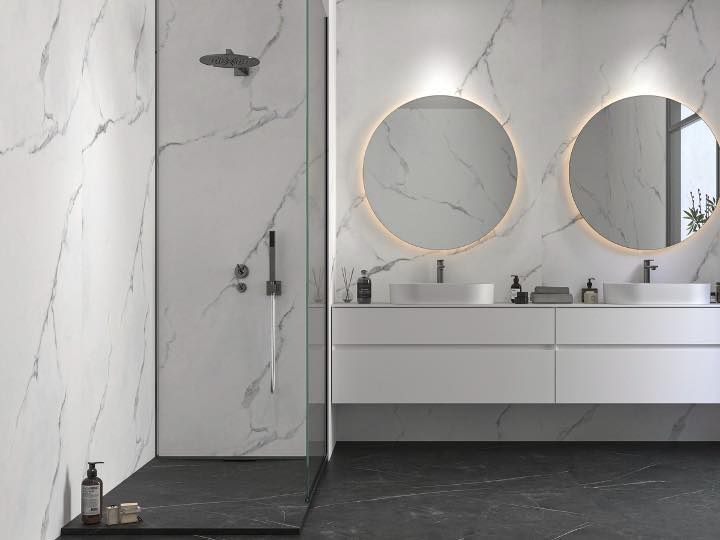 Marble white 60x120 cm - spc wandpaneel, witte marmeren afwerking