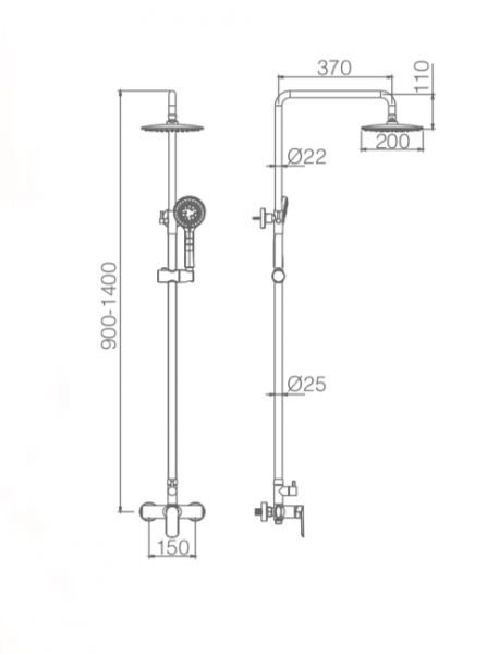 De PATERNA douchekolom heeft gebogen en ronde lijnen die de badkamer comfort, elegantie en welzijn geven.