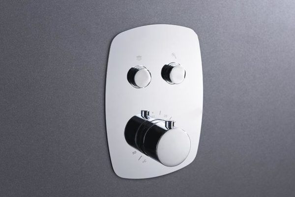 2-weg messing thermostaatkraan met drukknoppen en registratiebox.