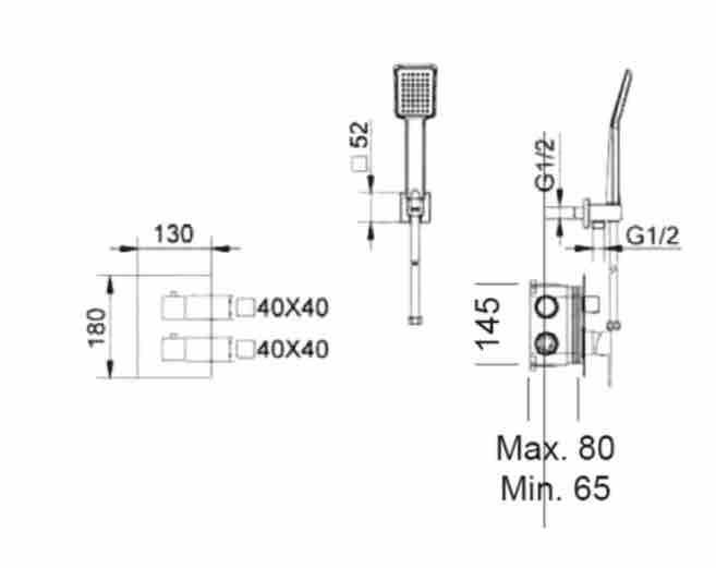 Inbouwdouche, thermostatisch, met regendouchekop 30 x 30 - sagonte chroom