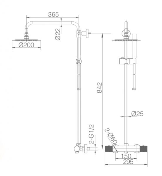 Douchekop in S.304 RVS rond ø20 cm extra plat en anti-kalk.