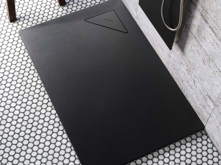 Design douchebak, met hoekwaterafvoer, sifon in de rechterhoek op 17 x 17 cm, leisteeneffect, antislip.