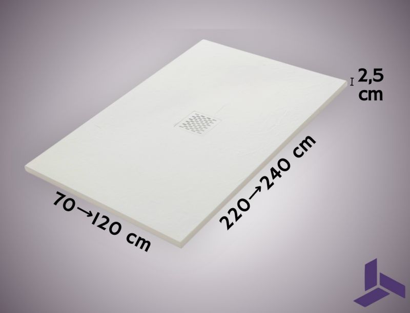Ontdek de VERONE XL CENTRAL douchebak, extra-plat (2,5 cm dik), van mineraalhars, leisteenlook en antislip. Maatwerk mogelijk met verschillende beschikbare kleuren. Gratis levering.