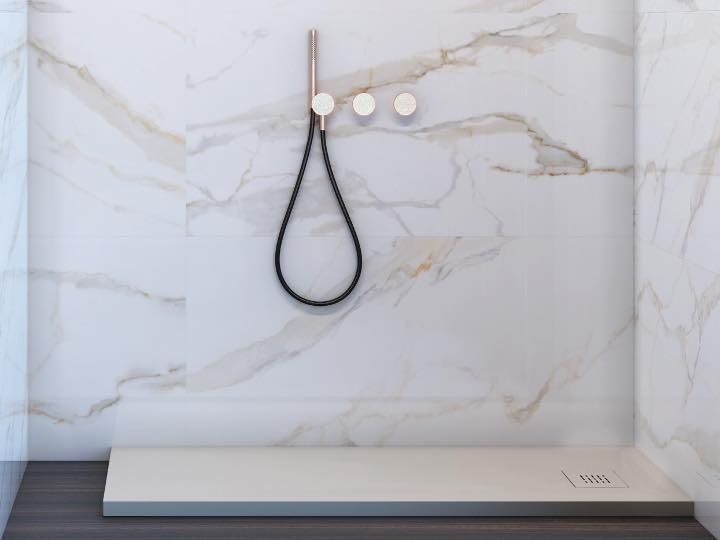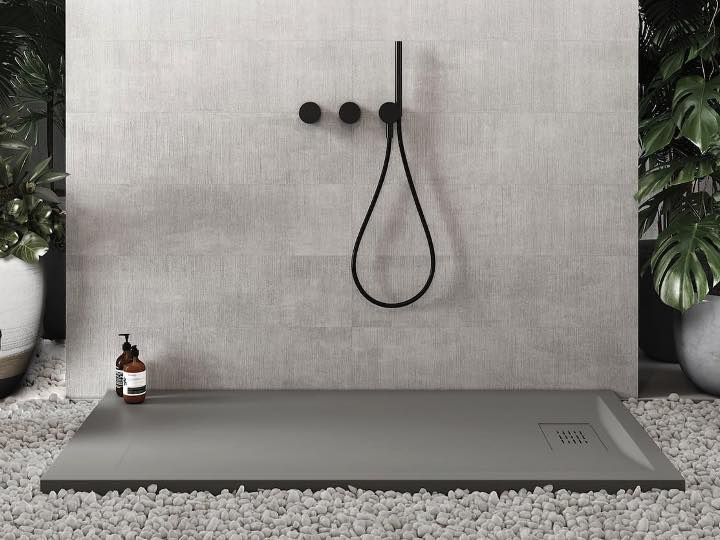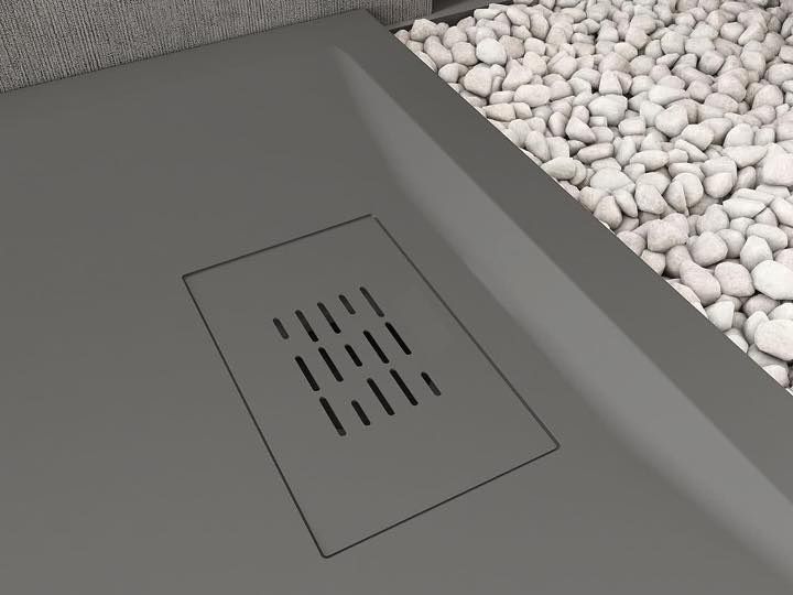 De douchebak is schuldig, tot 20 cm. Een vlakke rand aan het einde van de douchebak zorgt voor deze reductie, zonder de afvoerhellingen te beschadigen.