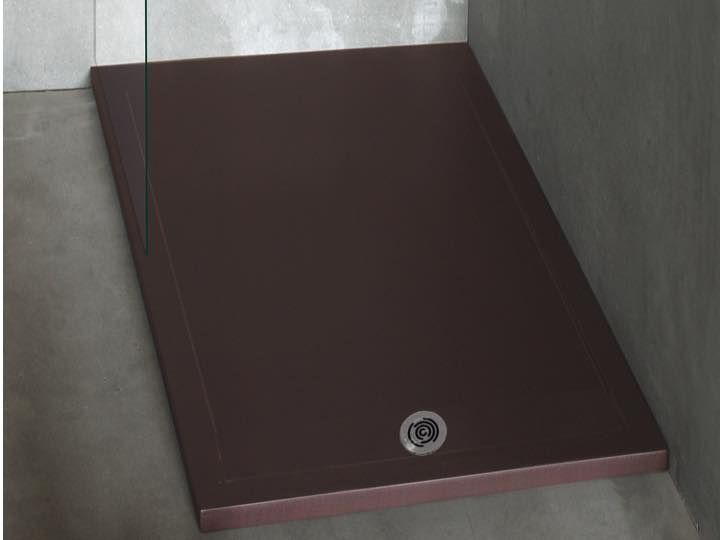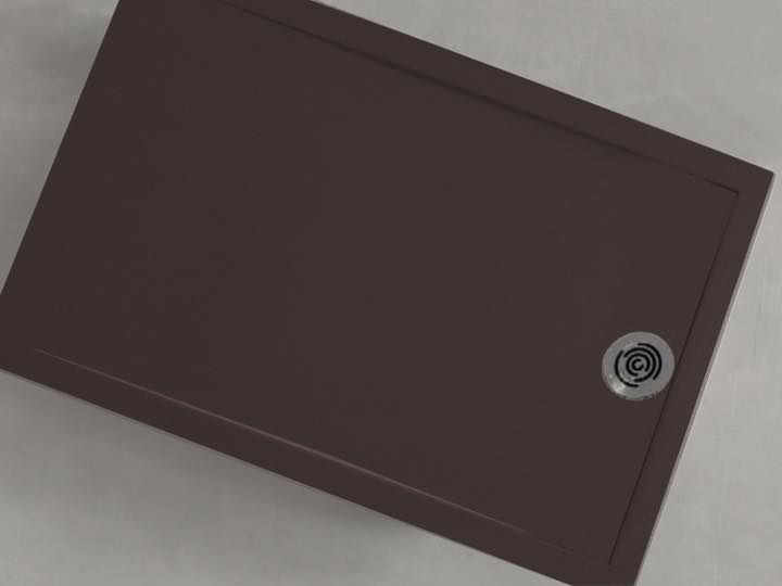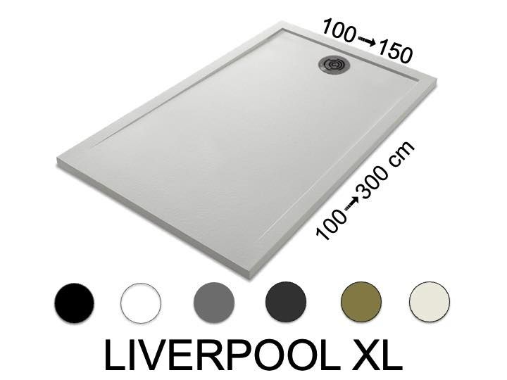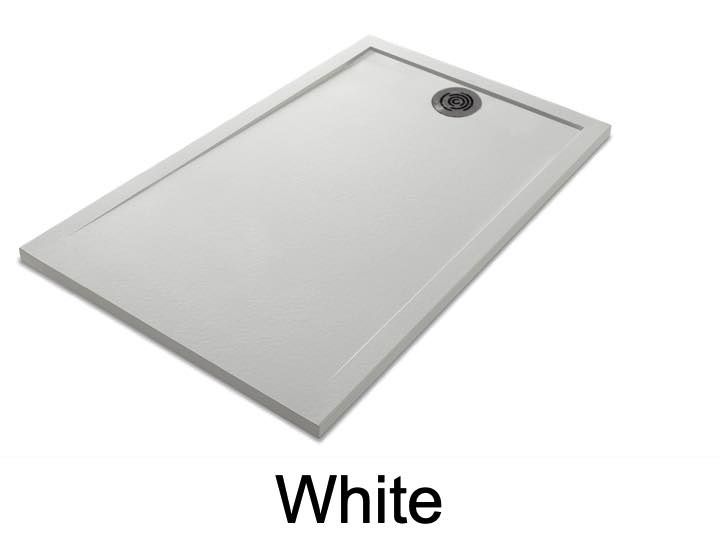 Grote douchebak, extra brede goot, in Akrytan® minerale hars, op maat gemaakt, gladde afwerking
