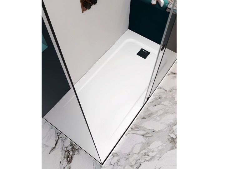 De douchebakken zijn gemaakt van Solid Surface. Het is een materiaal dat bestaat uit tweederde natuurlijke mineralen en een klein percentage hars met een hoge weerstand.
