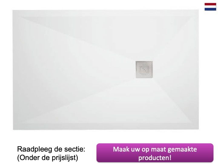 Extra platte douchebakken, in Solid Surface, op maat gemaakt.