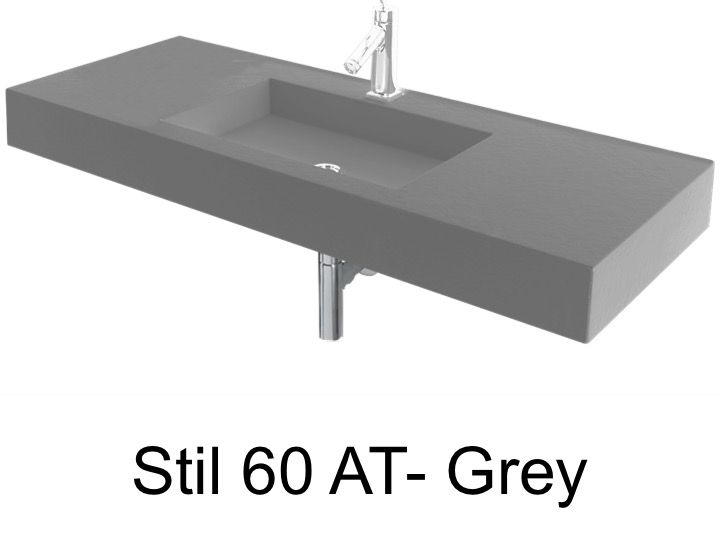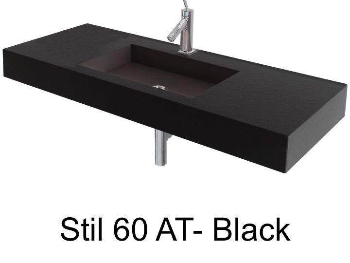 Wastafel, 50 x 130 cm, hangend of verzonken, in minerale hars - stil 60