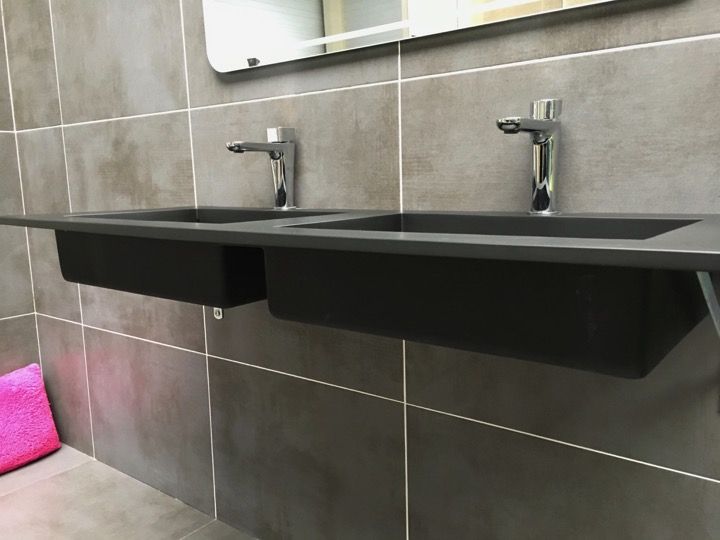 IJdelheid wastafels van Osolid Plus hars zijn gemaakt van natuurlijke mineralen en harsen van grote sterkte.
