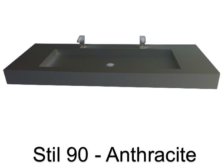 Dubbele kaptafel, 50 x 150 cm, hangend of verzonken, in minerale hars - stil 90