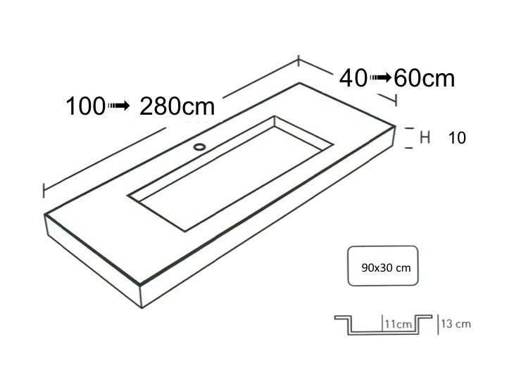 - Wastafel: 30 x 90 x 11 cm