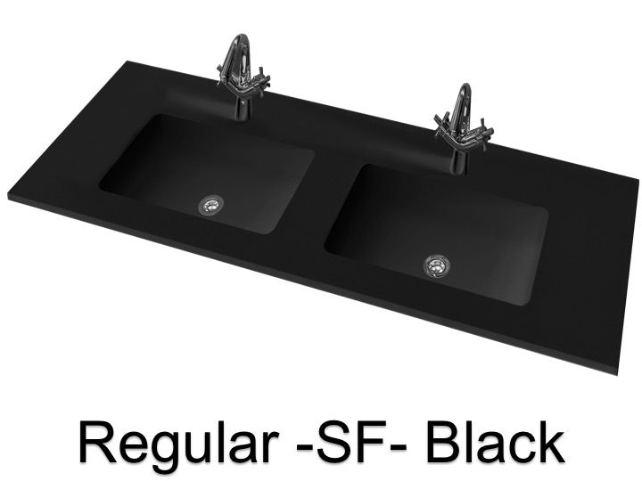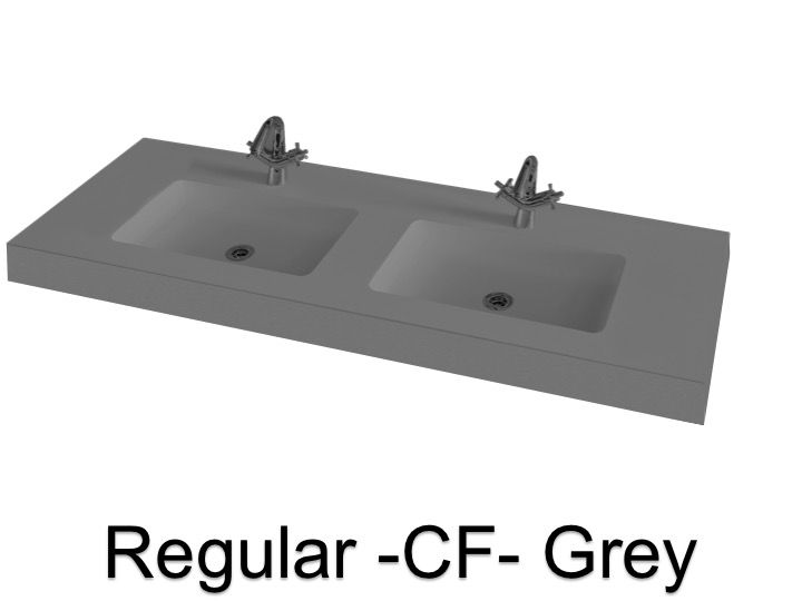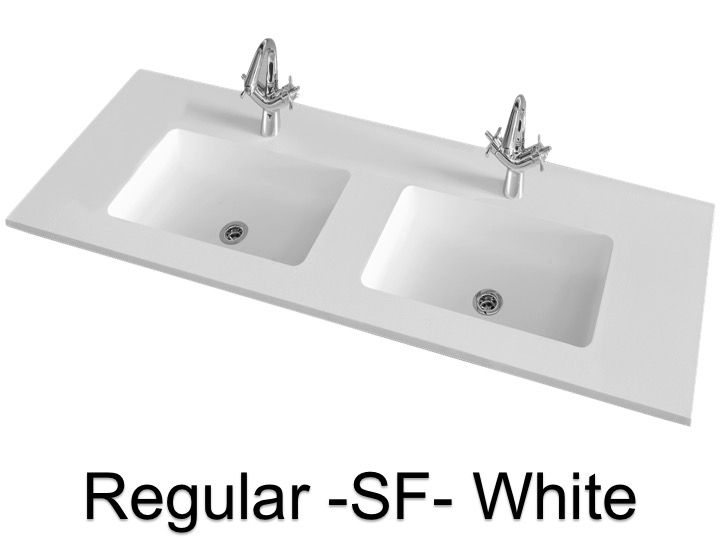 Dubbele wastafelblad, hangend of verzonken in badkamermeubels, in OSolid Plus minerale hars, mat textuureffect of matte textuur.