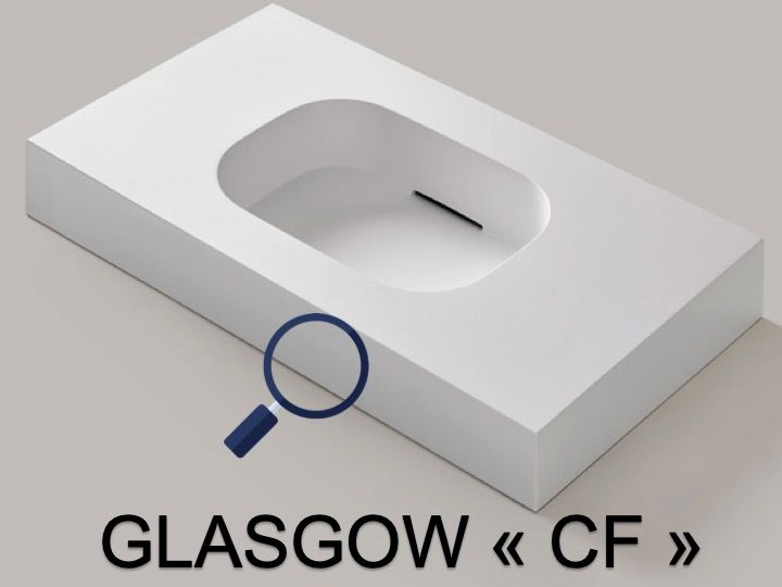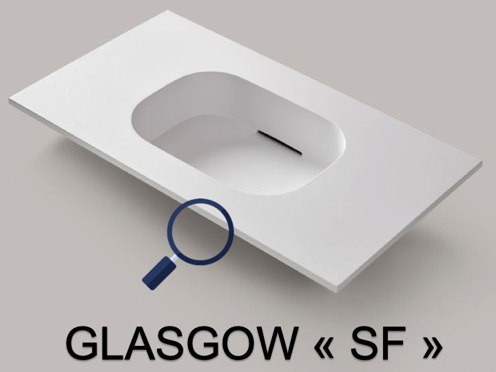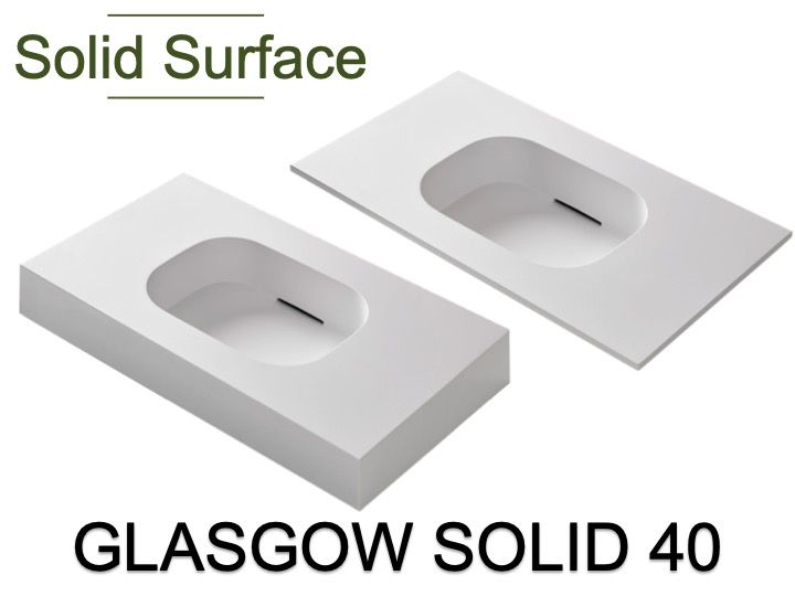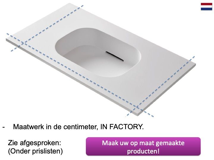 De wastafelbladen zijn gemaakt met Akrytan®-Solid minerale hars.