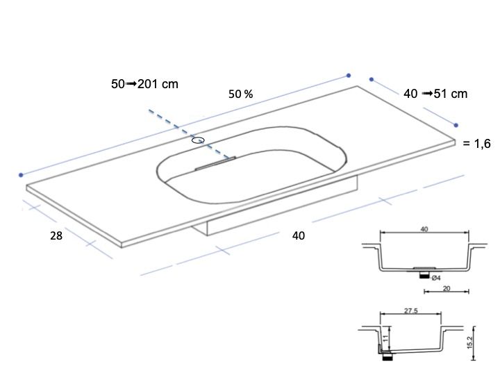 - Wastafel 28 x 40 x 11 cm