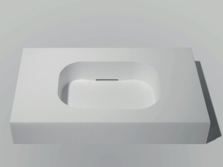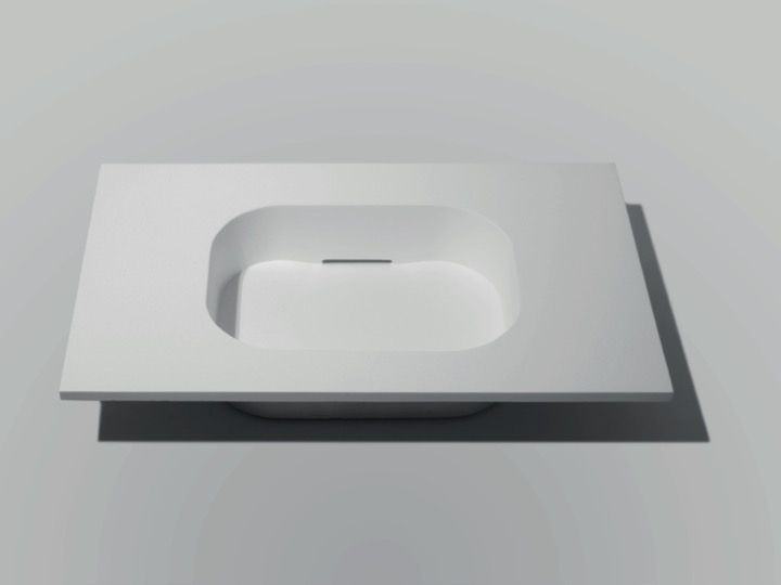 Wastafel met geïntegreerde wastafel, hangend of geplaatst op badkamermeubel, in AKRYTAN®-Solid minerale hars, gladde matte afwerking.