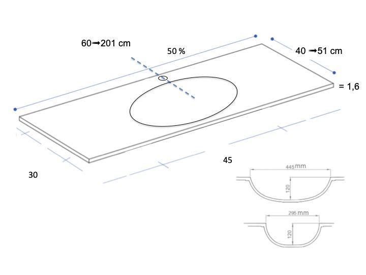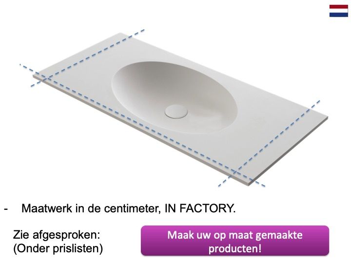 Wastafelblad, ovale wastafel, 120 x 46 cm, hangend of vrijstaand - leeds oval