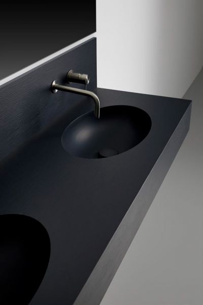De wastafelbladen zijn gemaakt met Akrytan® minerale hars.
