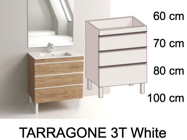 Wastafelset met 3 lades + wastafel + spiegel - tarragone 3t white