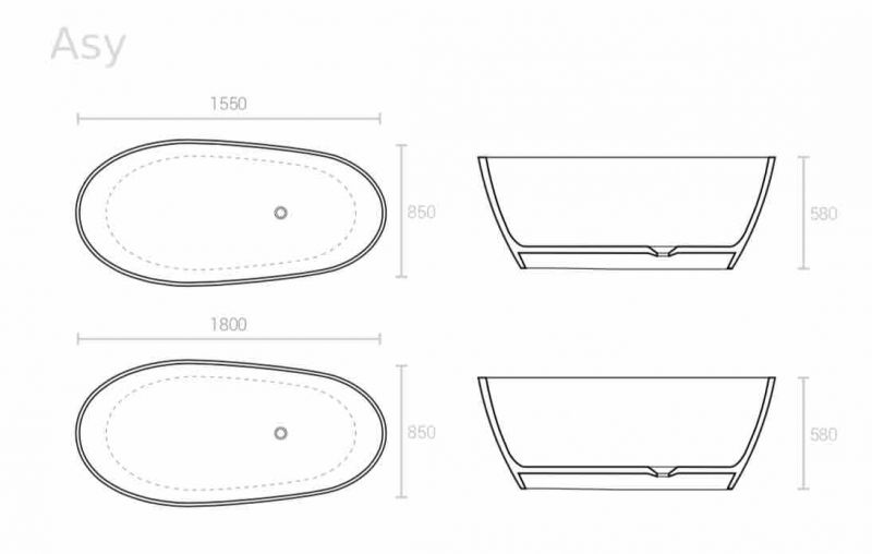 Wanny wolnostojące, wykonane są z żywicy Solid-Surface Acrysolid. Jest to materiał składający się w dwóch trzecich z naturalnych minerałów i niewielkiej ilości żywicy o wysokiej wytrzymałości.