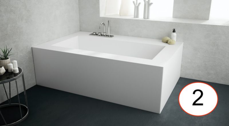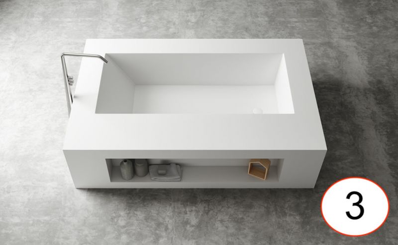 Wanny wolnostojące wykonane są z żywicy Solid-Surface. Jest to materiał, który składa się w dwóch trzecich z naturalnych minerałów i niewielkiego procentu żywicy o wysokiej wytrzymałości.
