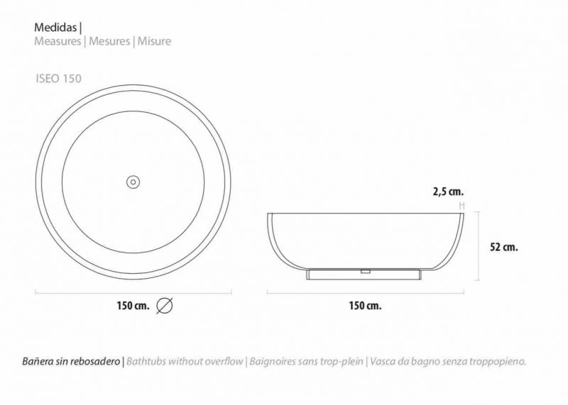 Wanna wolnostojąca, Ø 1500 mm, z żywicy mineralnej solid surface, w kolorze matowym - iseo