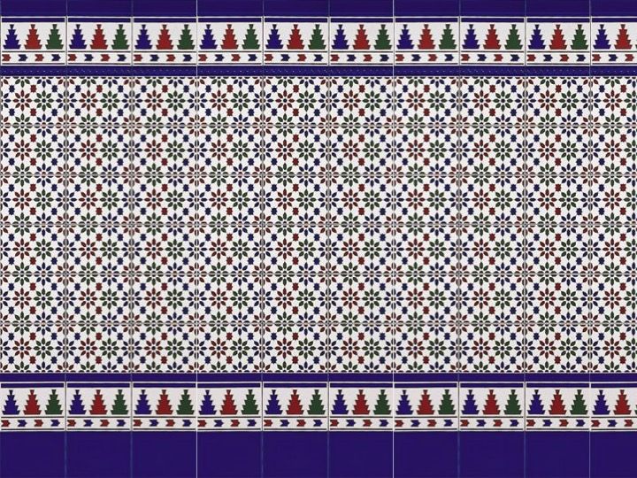 Płytki ścienne mają grafikę i kolory charakterystyczne dla andaluzyjskiej Hiszpanii i Afryki Północnej. Znajdujemy wpływ stylów hiszpańsko-mauretańskich i turecko-perskich, powiedziały orientalne, mauretańskie, andaluzyjskie, zellige.