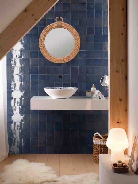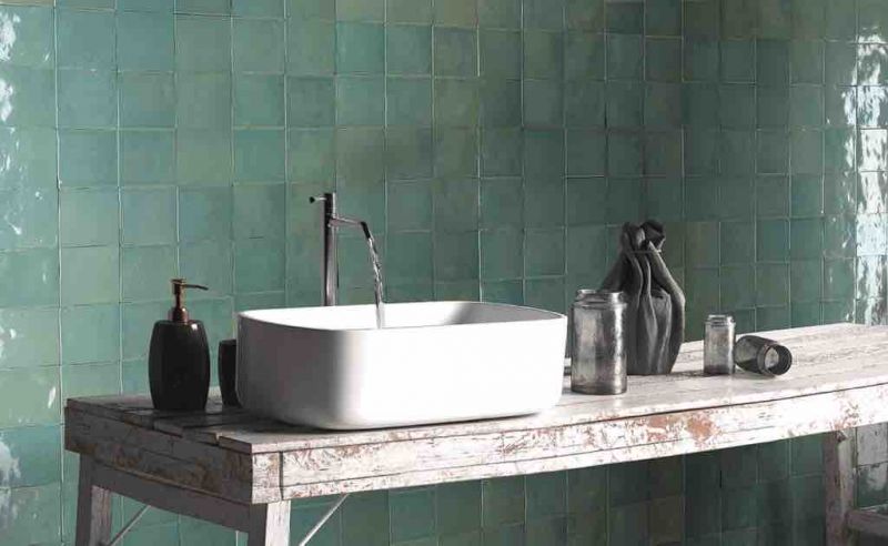 Płytki ścienne mają grafikę i kolory charakterystyczne dla Afryki Północnej. Znajdujemy wpływ stylów zellige.