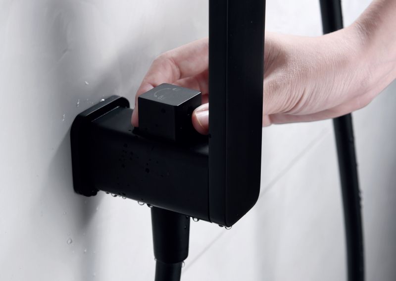 Wbudowany prysznic, czarny matowy mikser i gałka ozdobna - badalona black