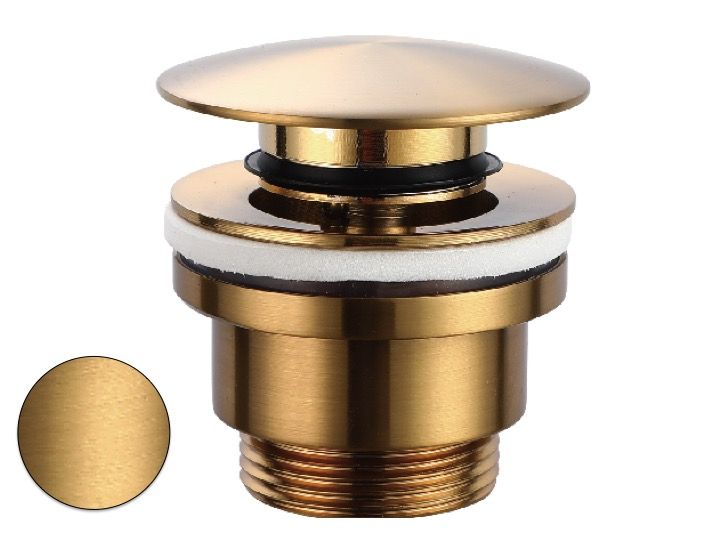 Odpływ do umywalki, push up, z przelewem - szczotkowane złoto