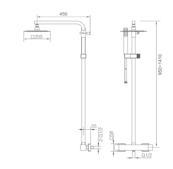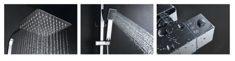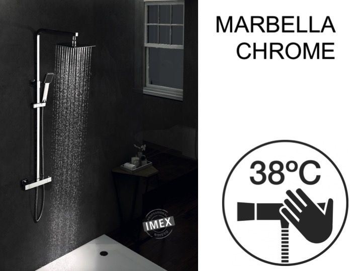 Kolumna prysznicowa, termostatyczna, z prostymi i kwadratowymi wykończeniami - marbella chrome