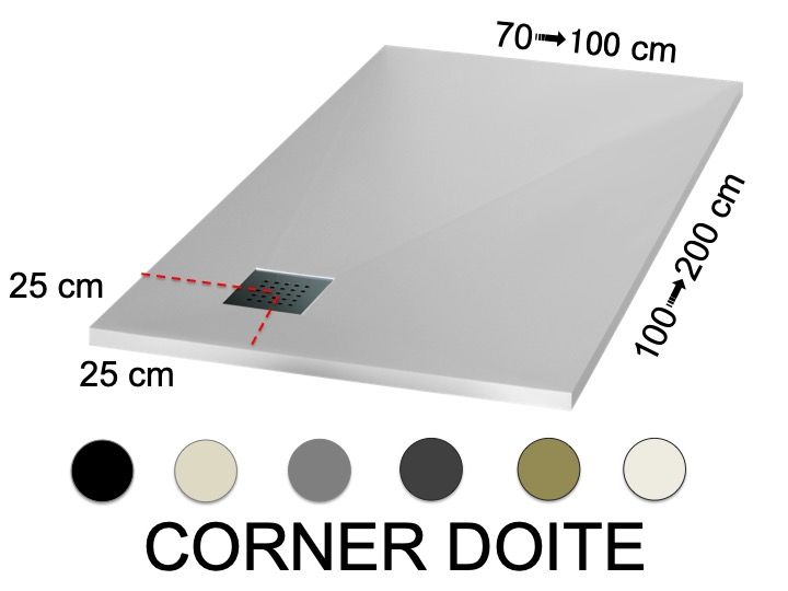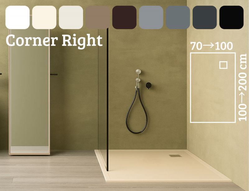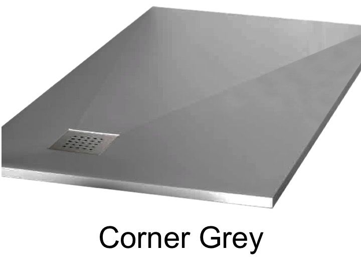 Brodzik z narożnym odpływem wody, syfon w prawym rogu 25 x 25 cm, efekt łupka, antypoślizgowy.