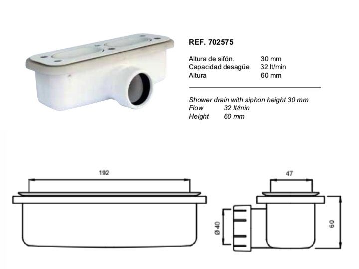 Brodzik prysznicowy z bocznÄ… ewakuacjÄ…, 140 cm z rynnÄ… - palermo