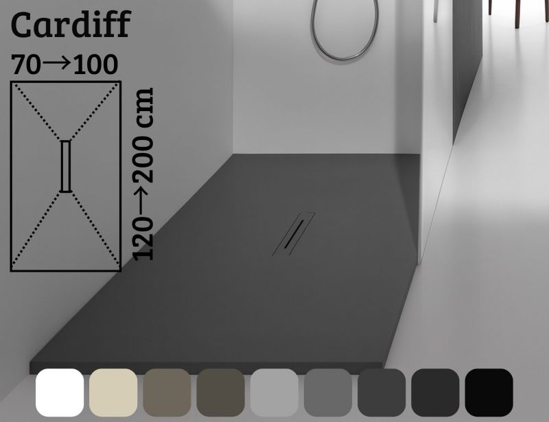 Brodzik prysznicowy 170 cm bardzo płaski odpływ centralny z żywicy - cardiff