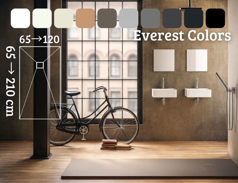 Brodziki EVEREST wykonane są z ekologicznej i trwałej żywicy Acrystone®. Mogą być wykonane na wymiar lub ponownie docięte.