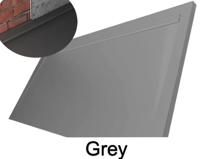Brodzik z designerskim odpływem, z dyskretnym odpływem, z żywicy mineralnej Akrytan®, robiony na zamówienie, gładkie wykończenie.