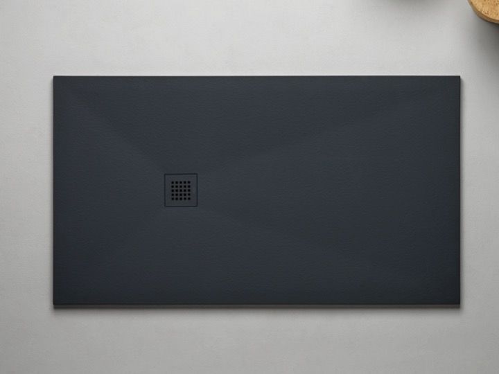 Brodzik Akrytan®, wyjątkowo płaski, z żywicy mineralnej, duży rozmiar, wykonany na zamówienie, wykończenie Pizarra (łupek)