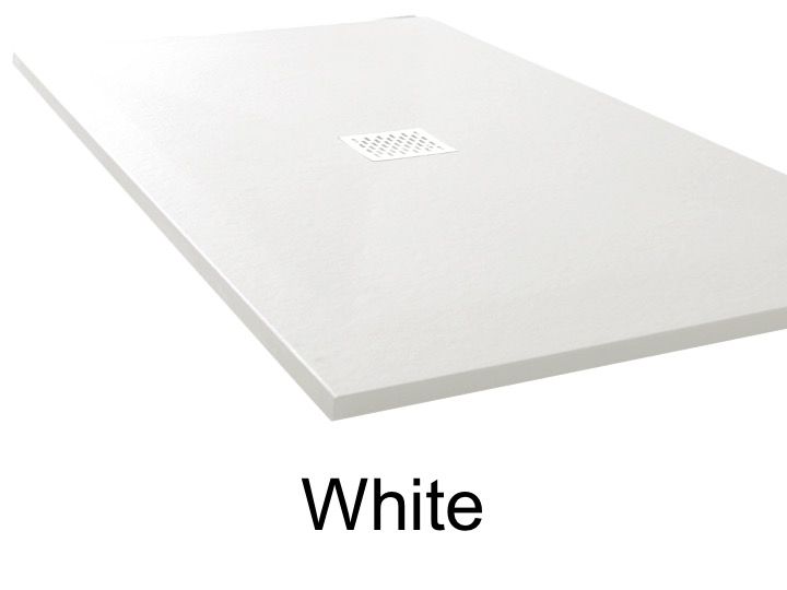 Brodziki z centralnym odpływem, wykonane z żywicy mineralnej, na wymiar, efekt kamienia, antypoślizgowe.