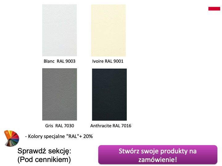 - Inne kolory: Czas produkcji 10 dni + dostawa od 5 do 7 dni.