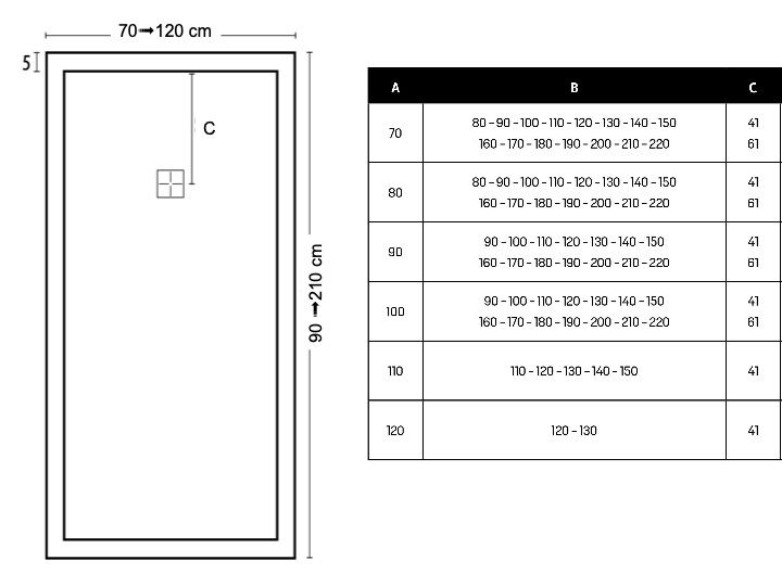 - Szerokość: 70 => 120 cm