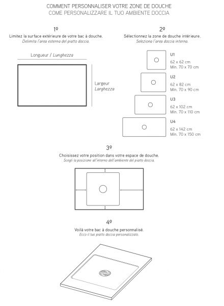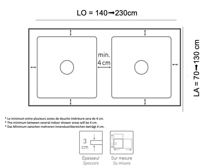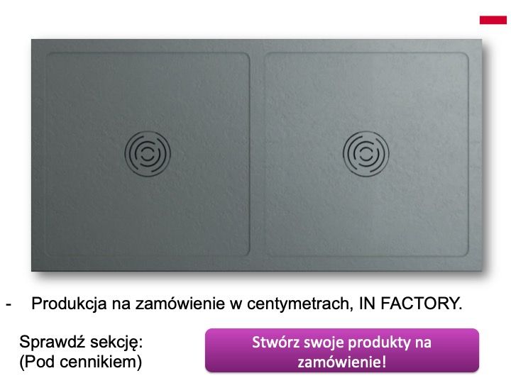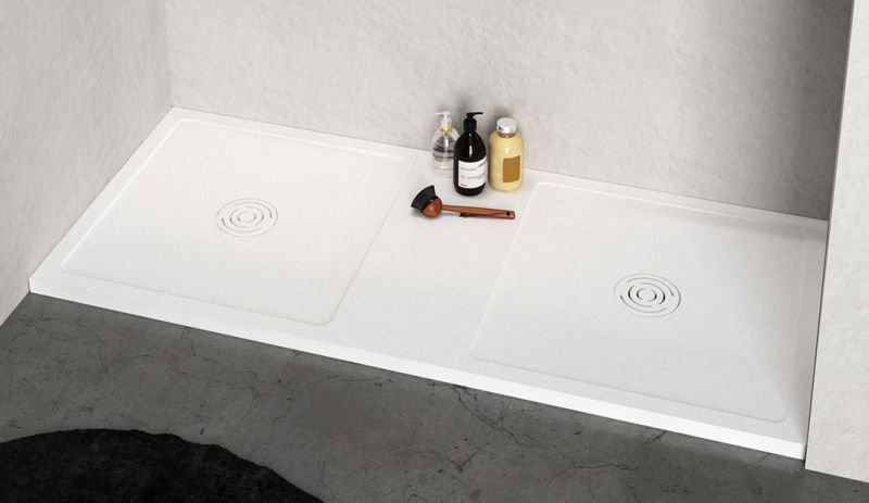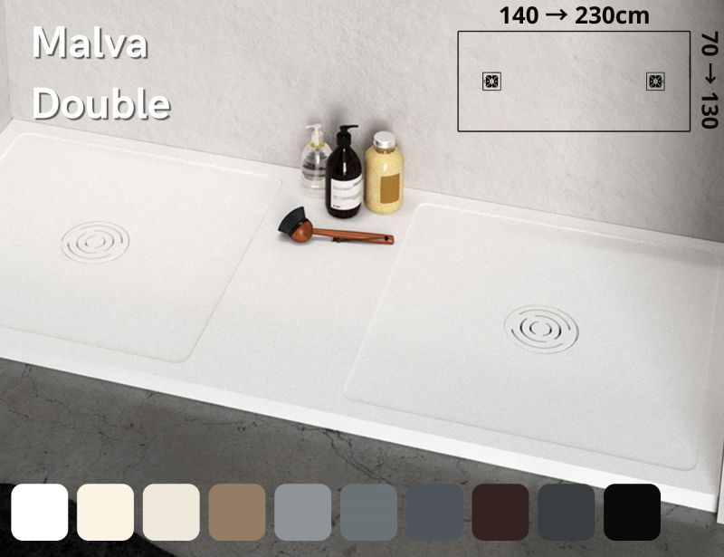 Brodziki prysznicowe z żywicy mineralnej, duże rozmiary z podwójnym odprowadzeniem, wykonane na wymiar.