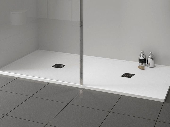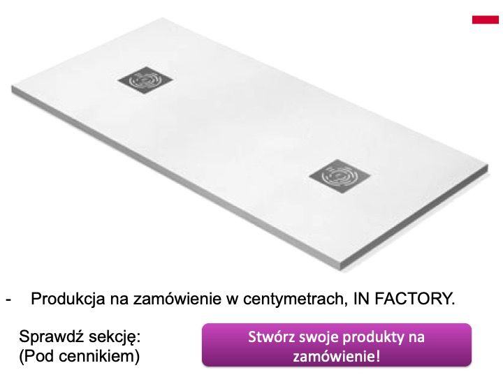 Brodziki prysznicowe z żywicy mineralnej, duże, z uszczelnieniem wodnym, szyte na miarę.