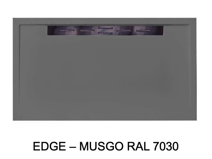 Brodzik prysznicowy EDGE. Jego faktura przypomina naturalny kamień. Kratka boczna jest lekka i elegancka, wykonana z wysokiej jakości stali nierdzewnej.