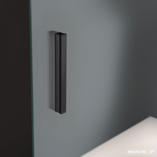 Przesuwane drzwi prysznicowe, montaż we wnęce, składające się z drzwi przesuwnych i stałego panelu, odwracalne.