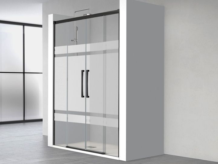 Parawan prysznicowy, czarny, 160 cm, półkryjący, podwójny przesuwny - toulouse noir blod plus