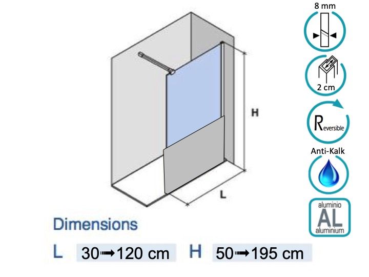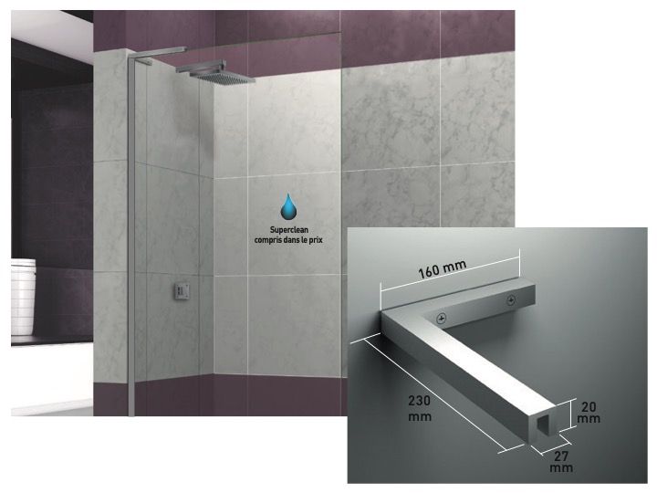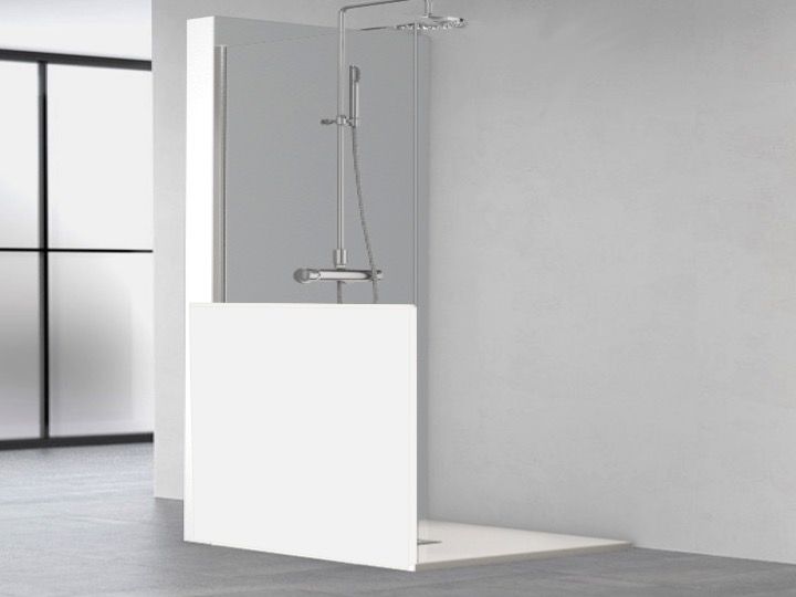 Parawan prysznicowy stały, z dyskretnym stabilizatorem, szyty na miarę.