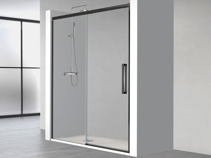 Przesuwane drzwi prysznicowe 210 cm ze stałą szybą - nantes 310 black