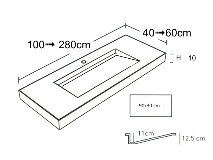 Podwójny blat umywalki, 50 x 100 cm, umywalka 30 x 90 cm - coper 90